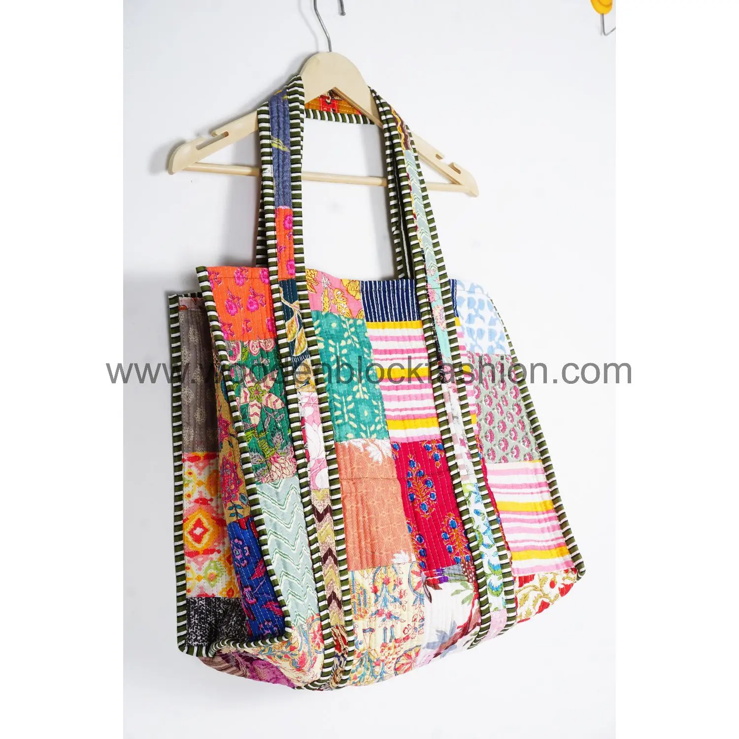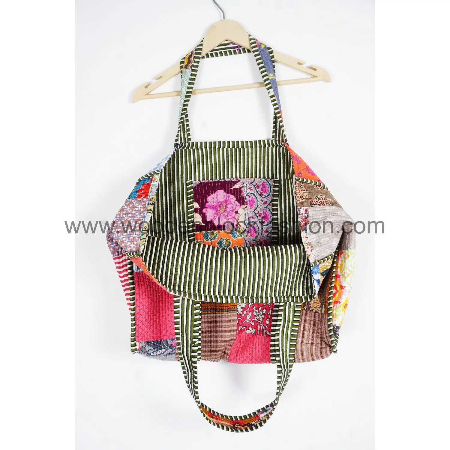 Celebrate Indian artistry with this quilted cotton tote bag. Featuring traditional hand block printed stripes, it is reusable, lightweight, and ideal for shopping, travel, or daily use.