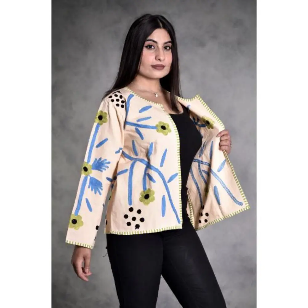 Suzani Embroidered Cotton Canvas Jacket, Boho Hippie Style