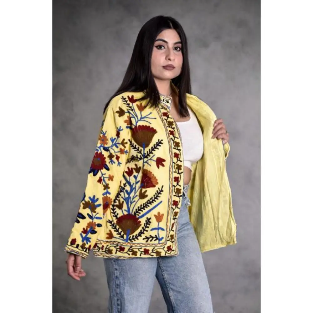 Velvet Suzani Jacket, Hand Embroidered Autumn Winter Short Jacket