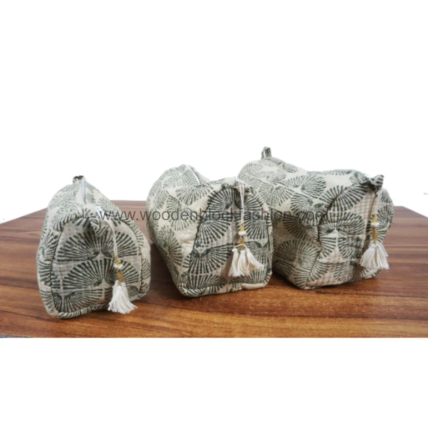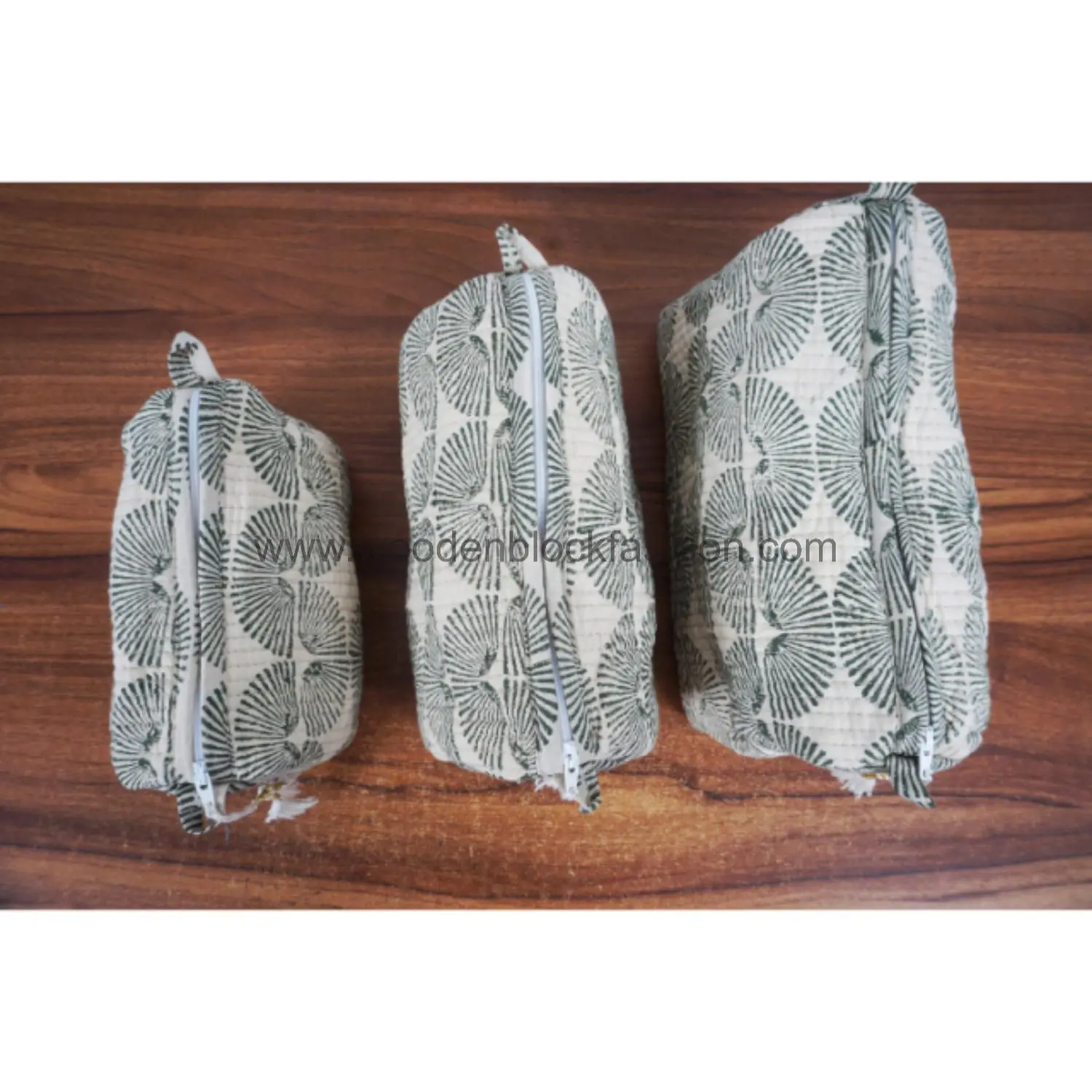 Block Print Quilted Toiletry & Cosmetic Bag Trio