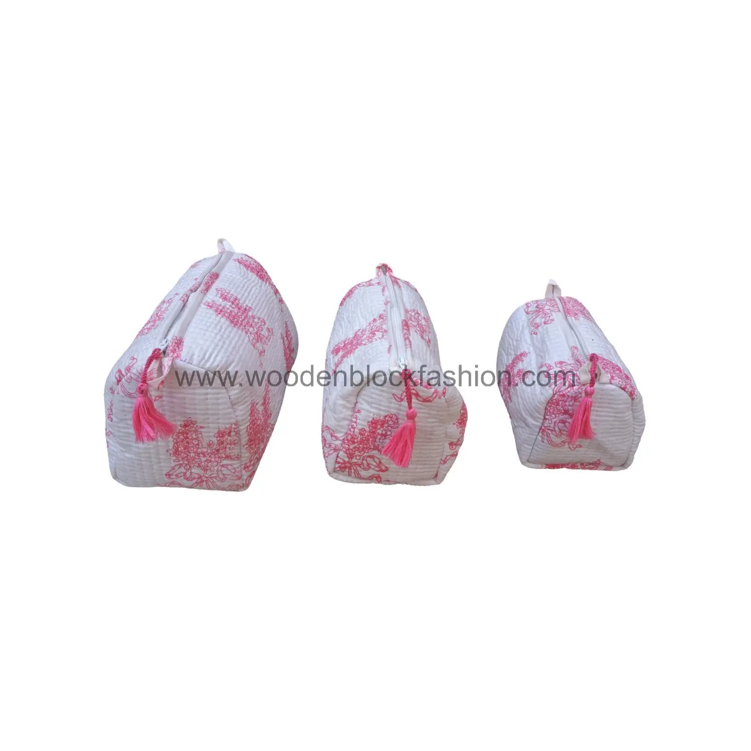 Quilted pouch set ideal for packing toiletries or cosmetics.