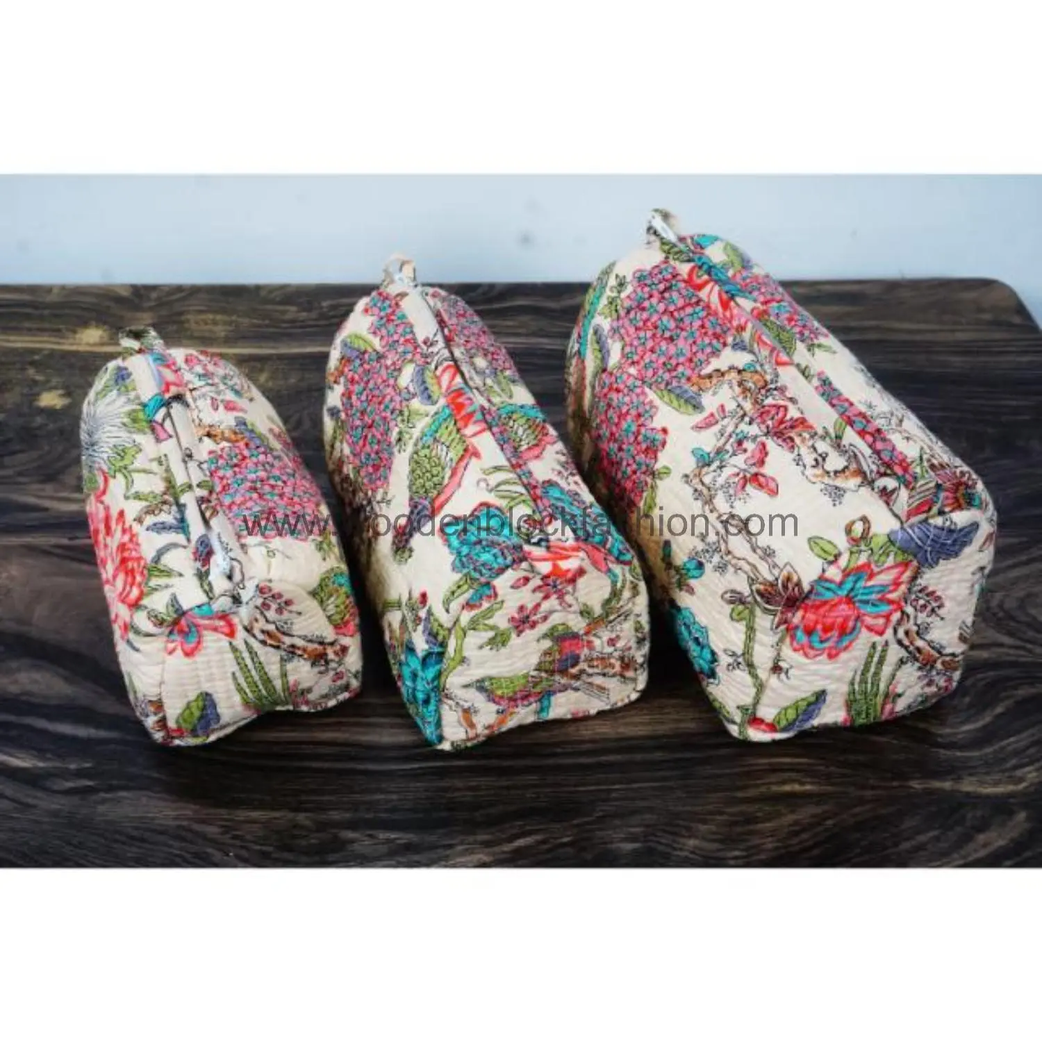 Travel-ready quilted bags for all your toiletries.