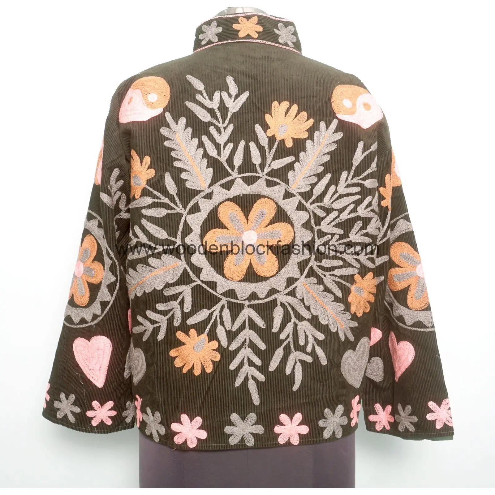 Multi Color Embroidery Cotrise Bomber Coat, Indian Cotton Suzani Jacket