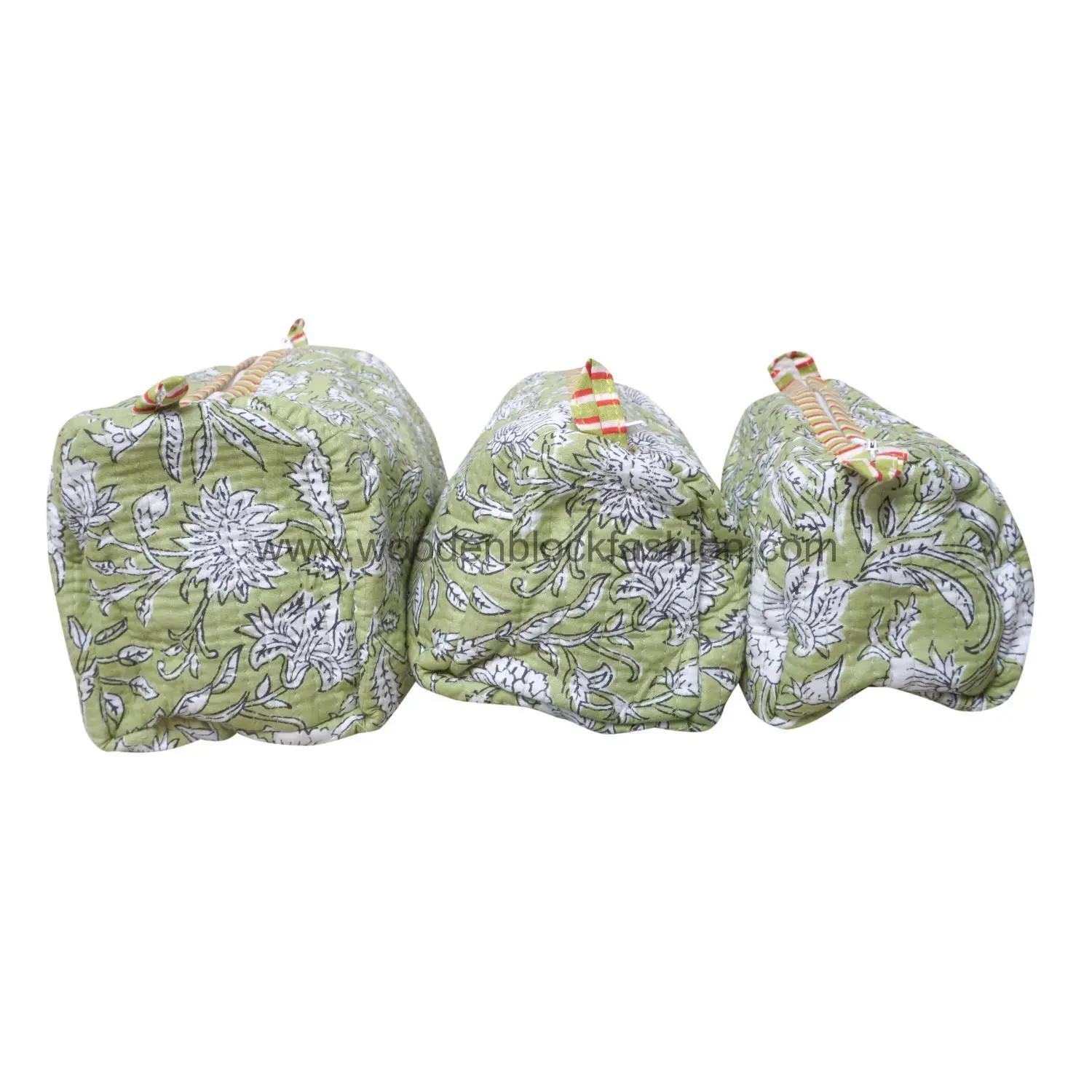 Handcrafted with attention to detail, this quilted cosmetic pouch set features block printed fabric and practical design.