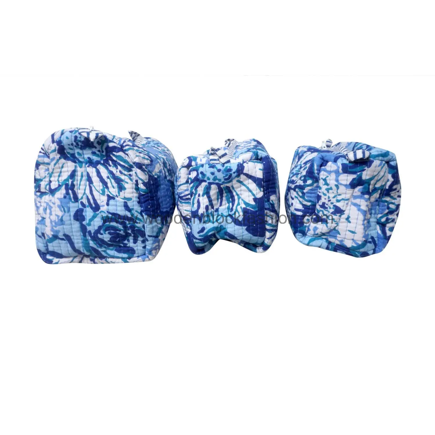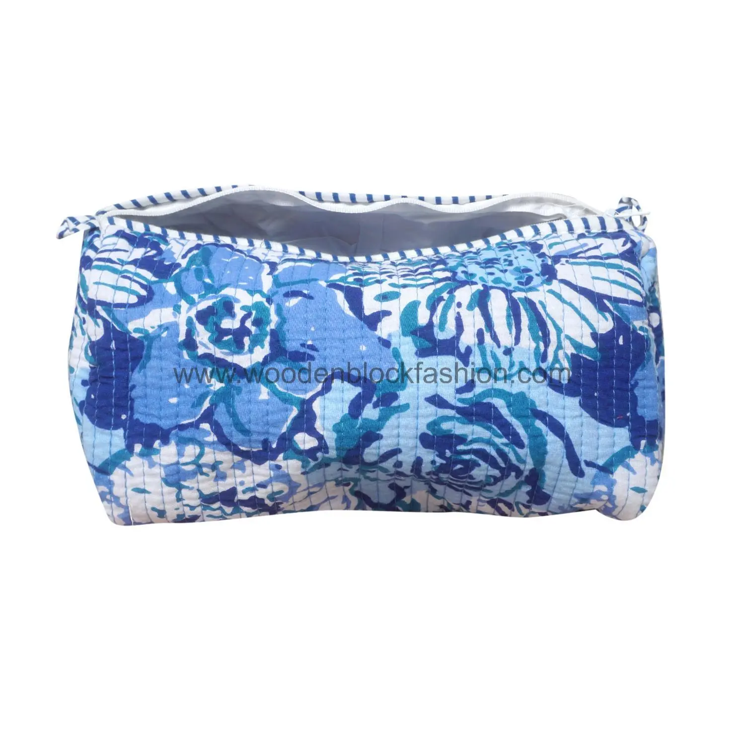 Keep your essentials neatly stored with this block print quilted cosmetic and toiletry storage bag set. Functional, stylish, and travel-ready.