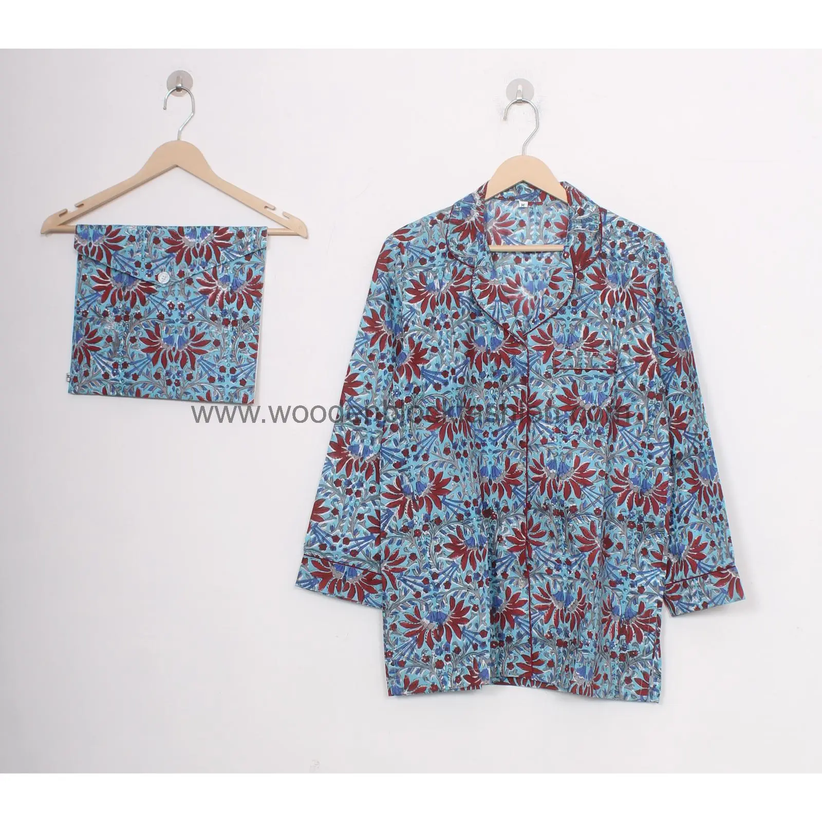 Women’s Blue Floral Cotton Pajama Set – Hand Block Print