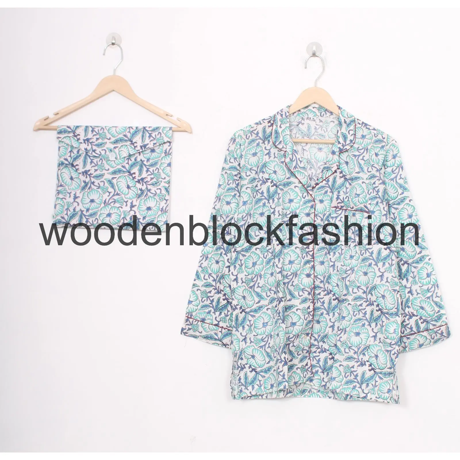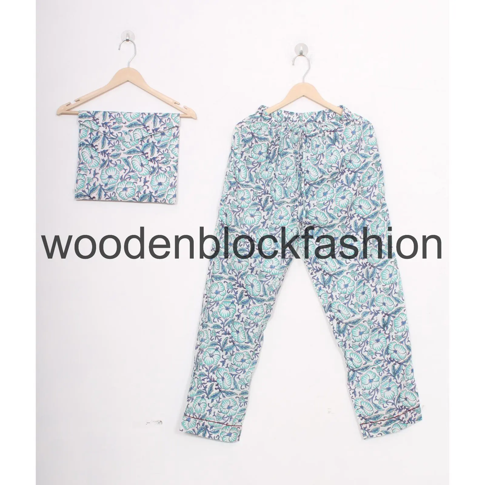 Indian Cotton Pajama Suit, Hand Block Artisan Nightwear Pj's