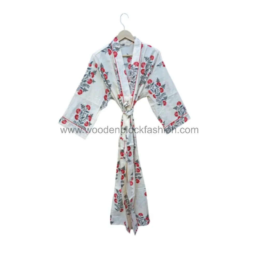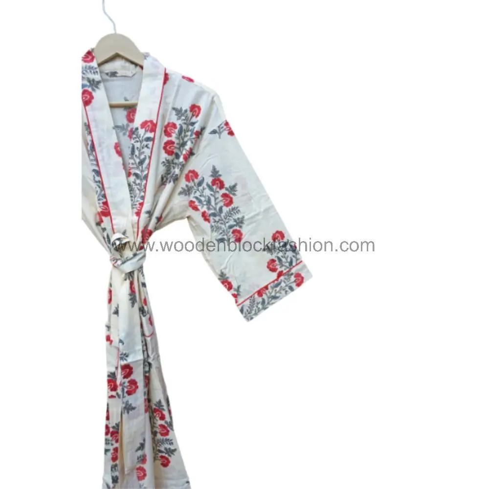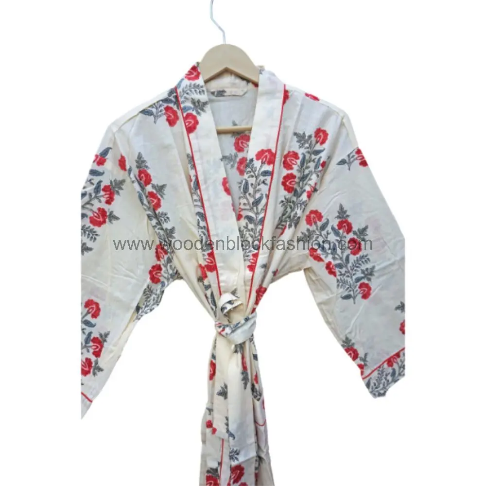 This hand-painted kimono robe combines Japanese style with Indian craftsmanship. The soft cotton fabric feels luxurious against the skin.