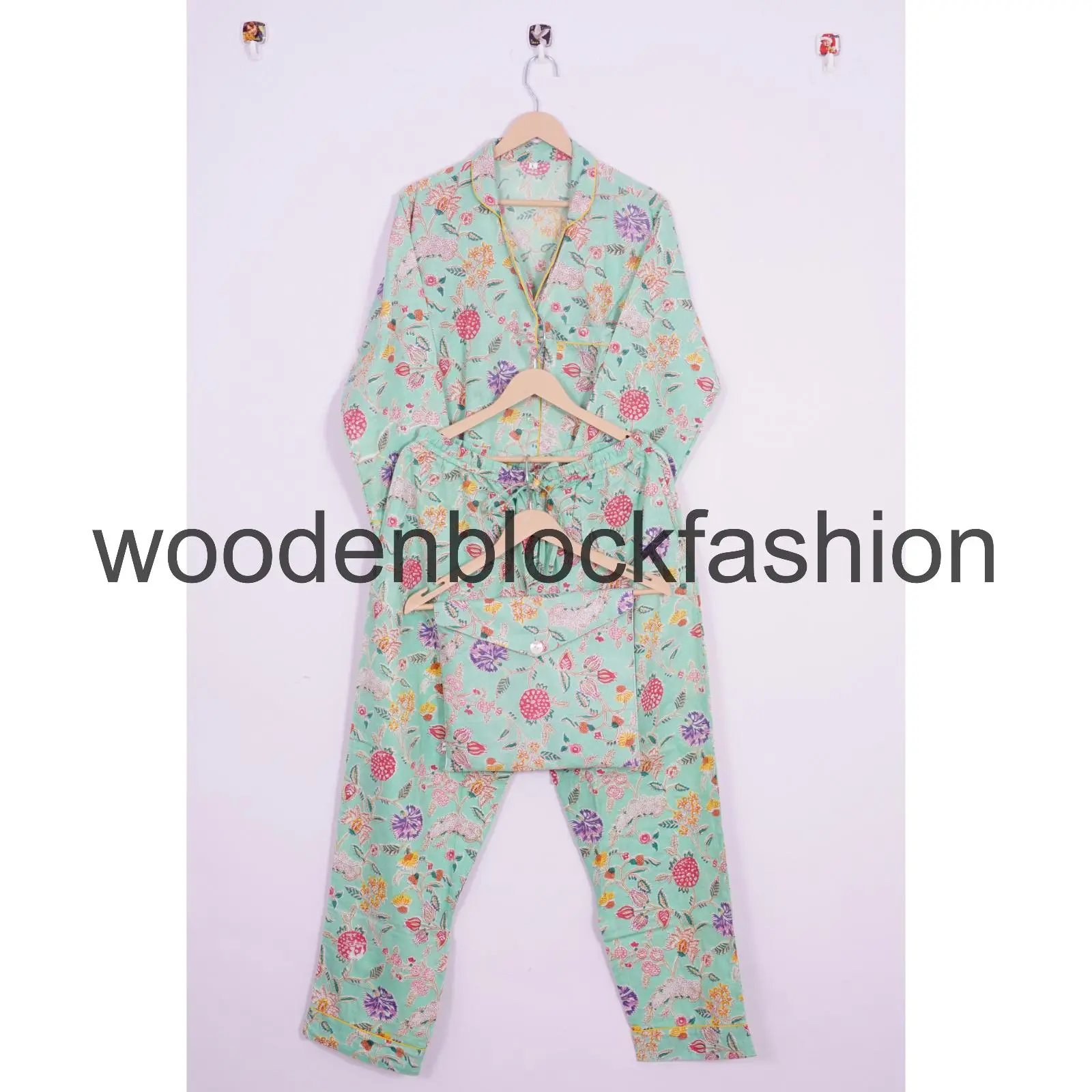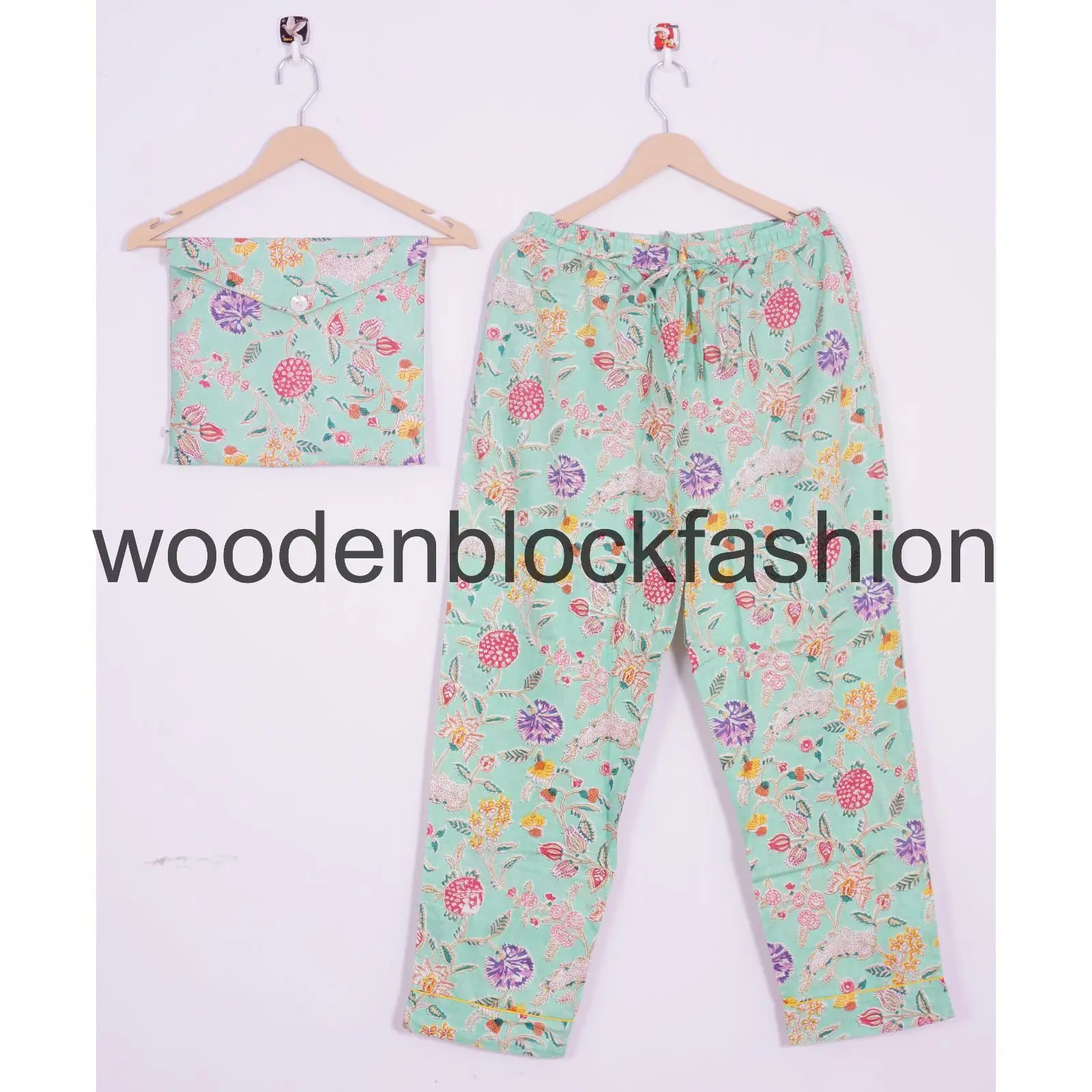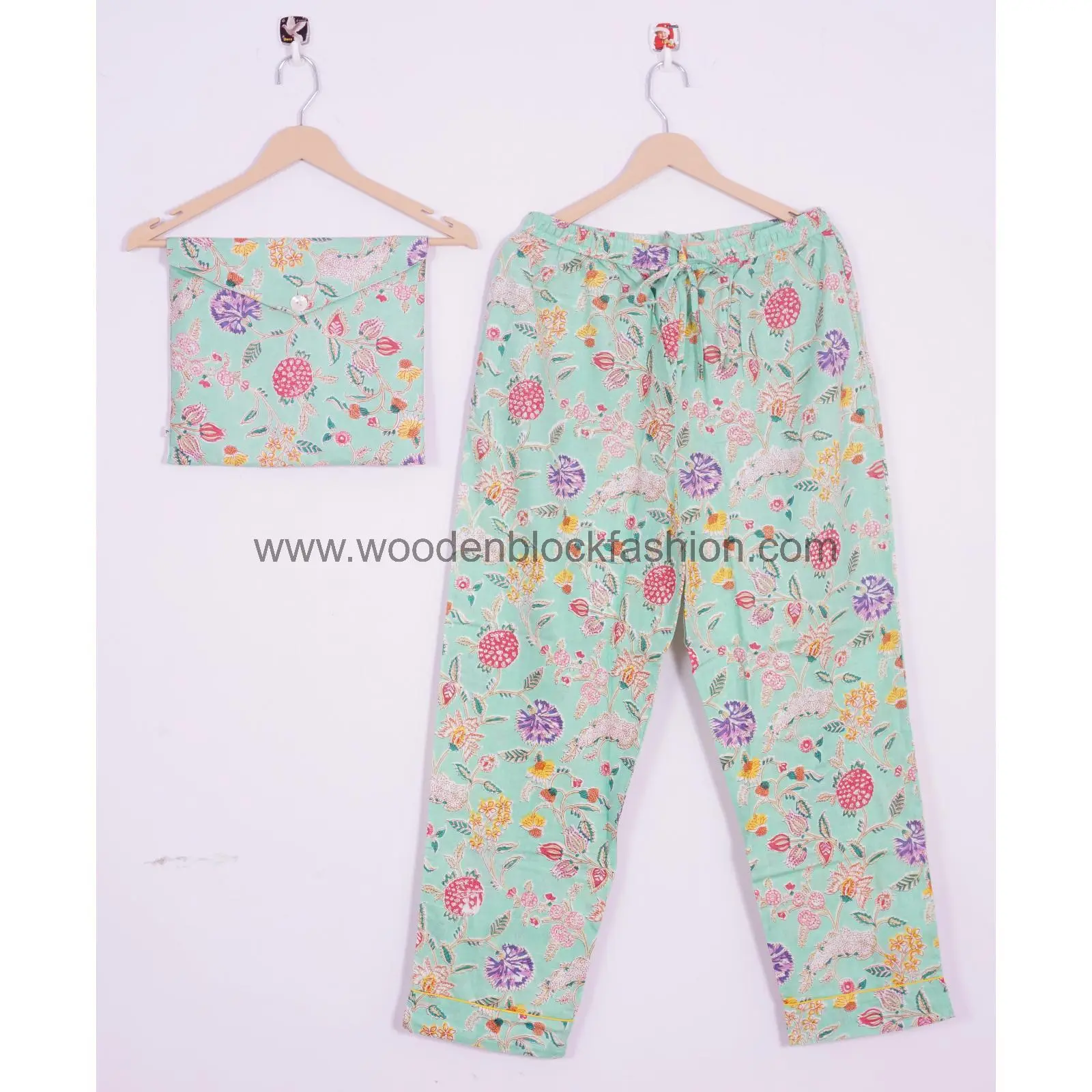 Hand Block Print Cotton Pajama Set, Indian Lounge And Sleepwear Pj's