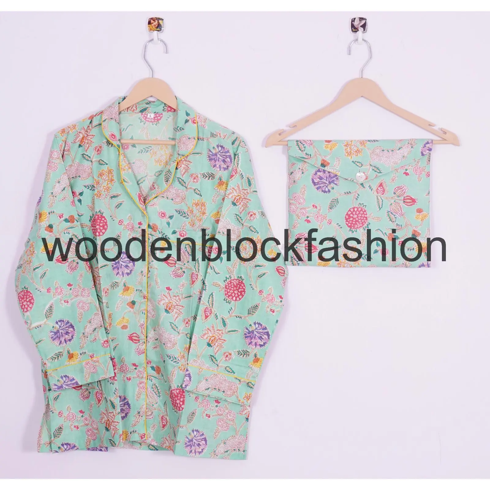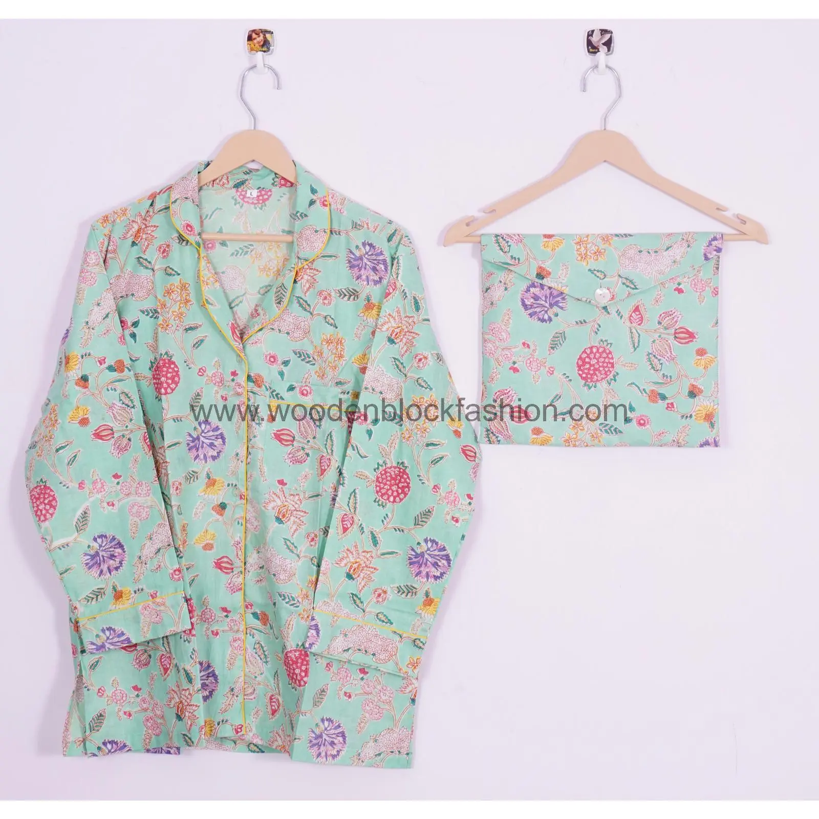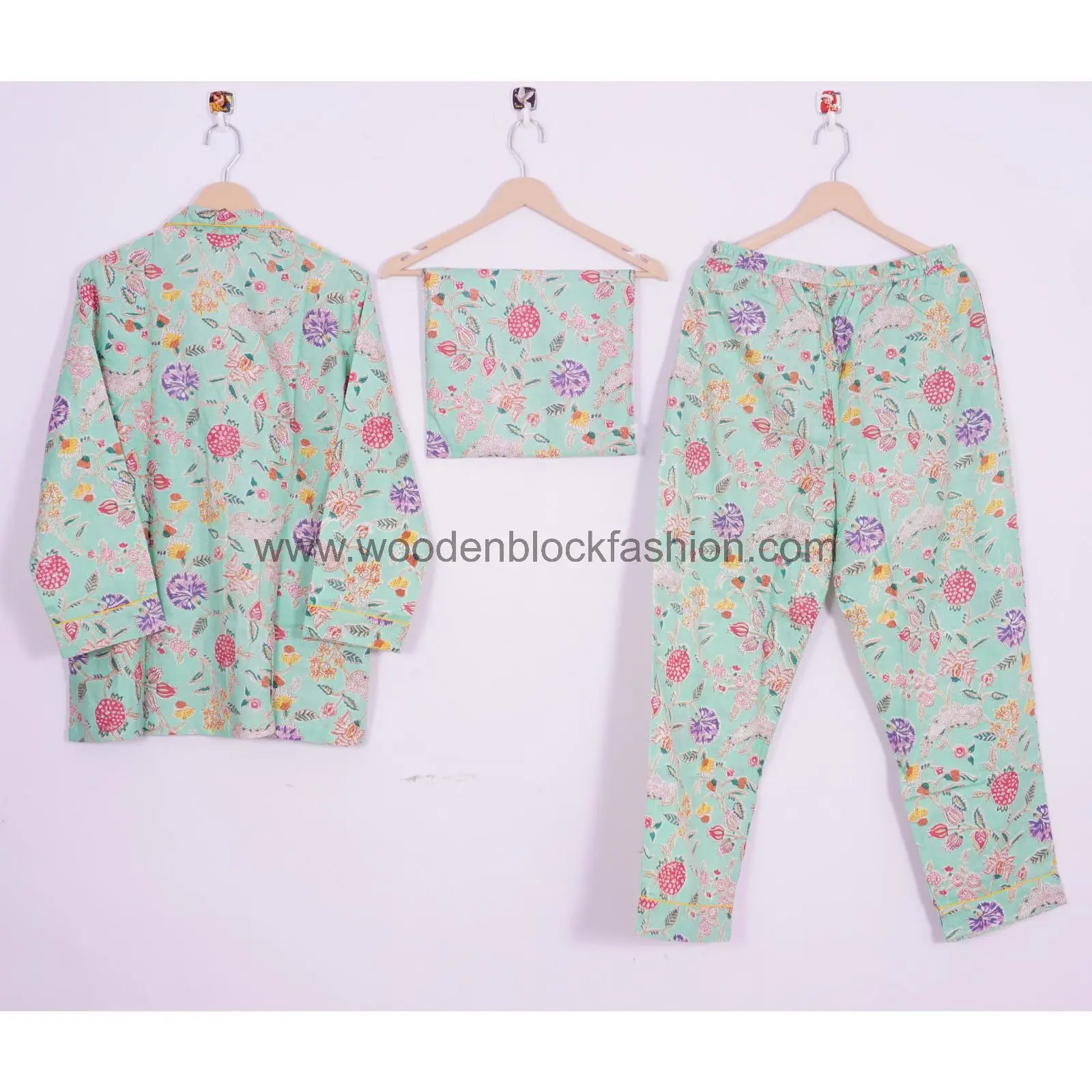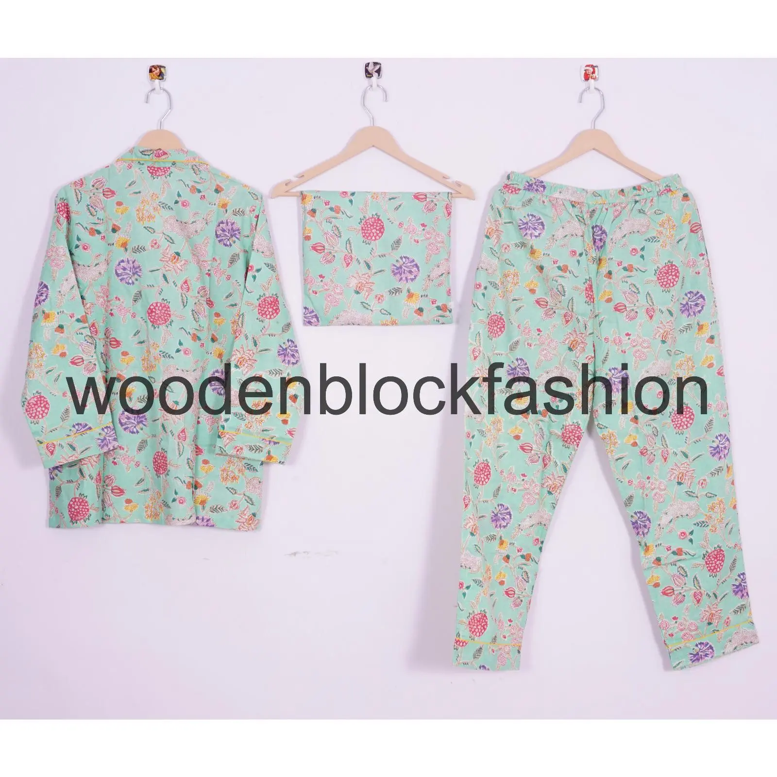 Hand Block Print Cotton Pajama Set, Indian Lounge And Sleepwear Pj's