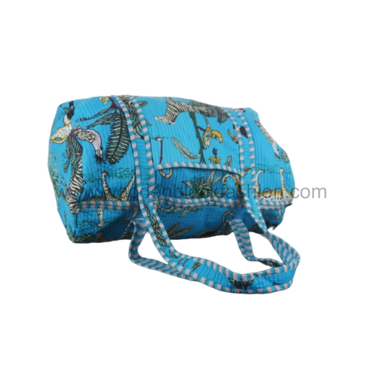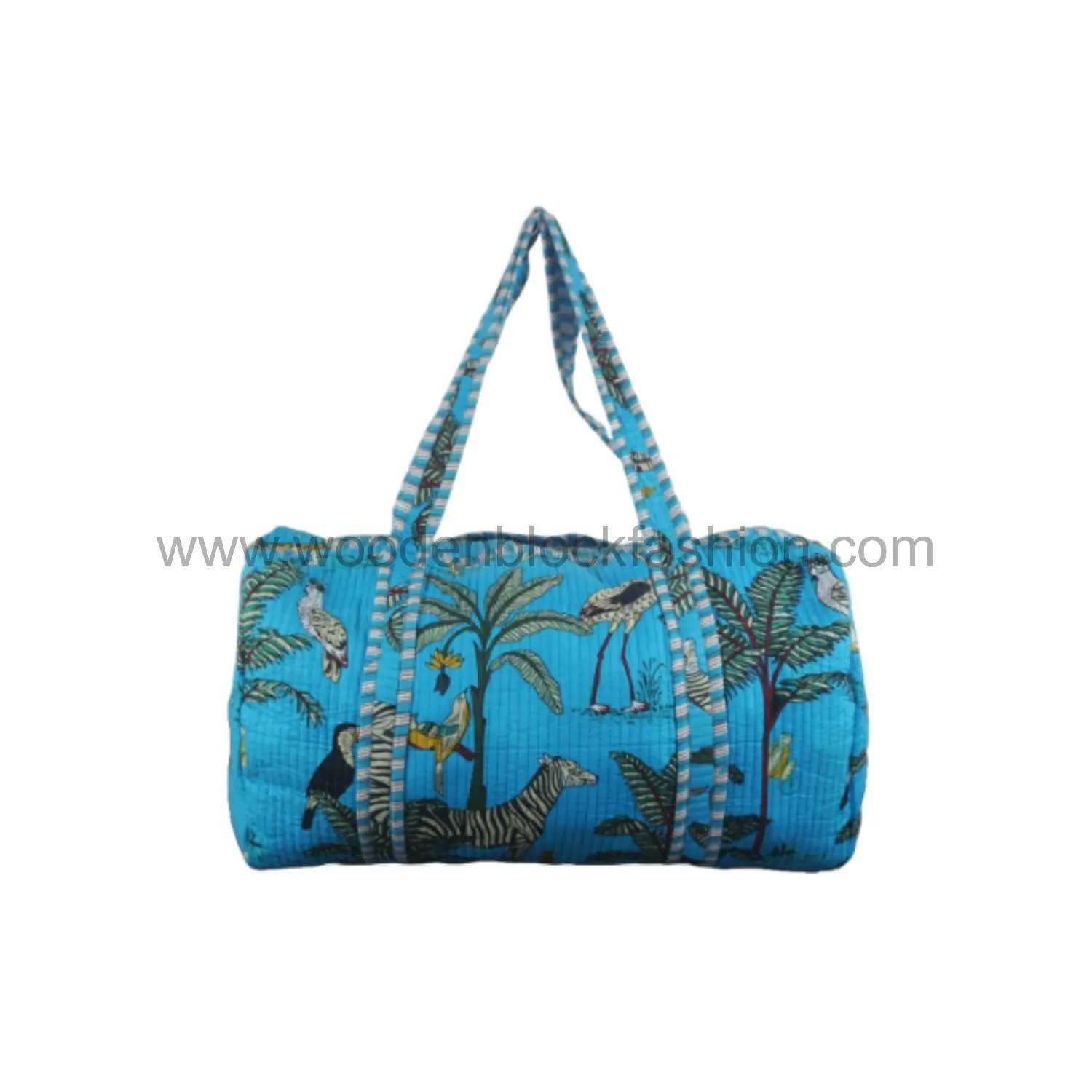 Spacious and stylish, this overnight duffle is perfect for women on the go. Handmade with care, its quilted cotton construction is lightweight yet sturdy.