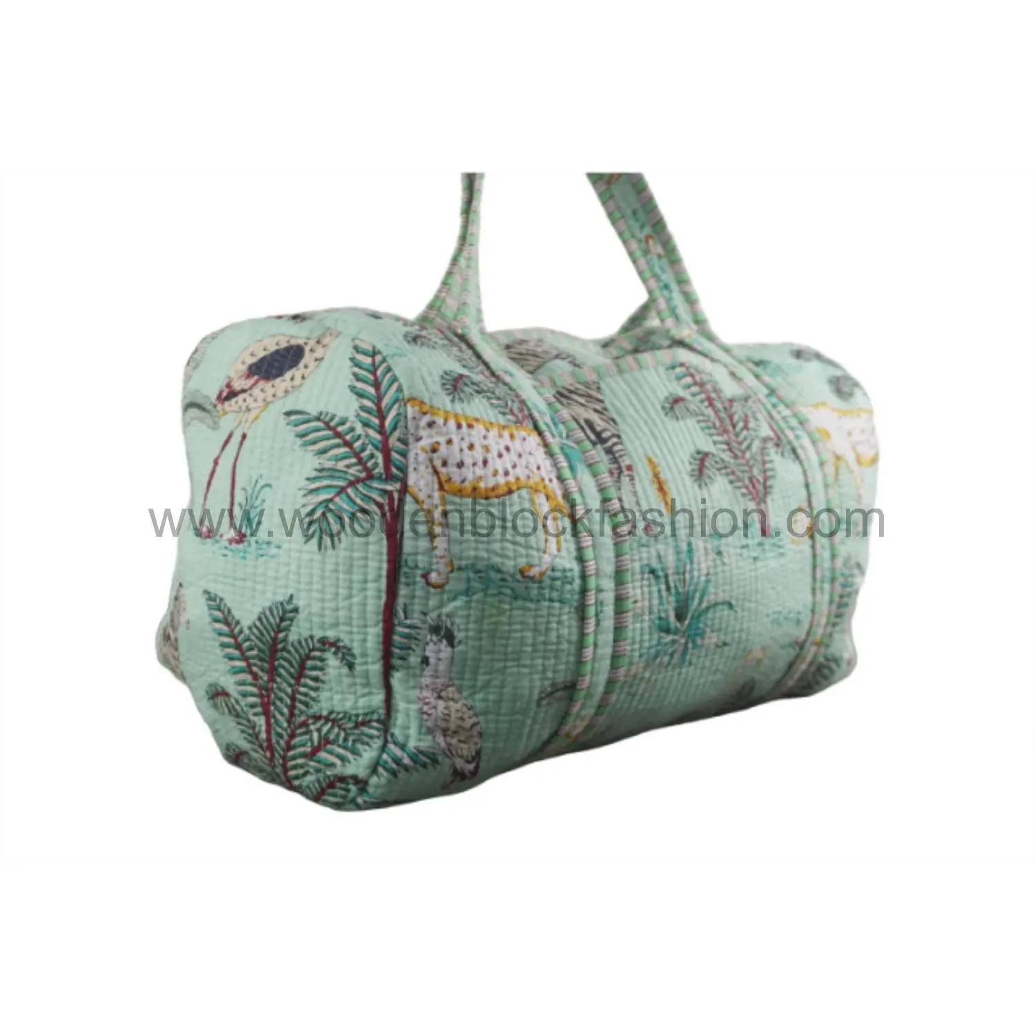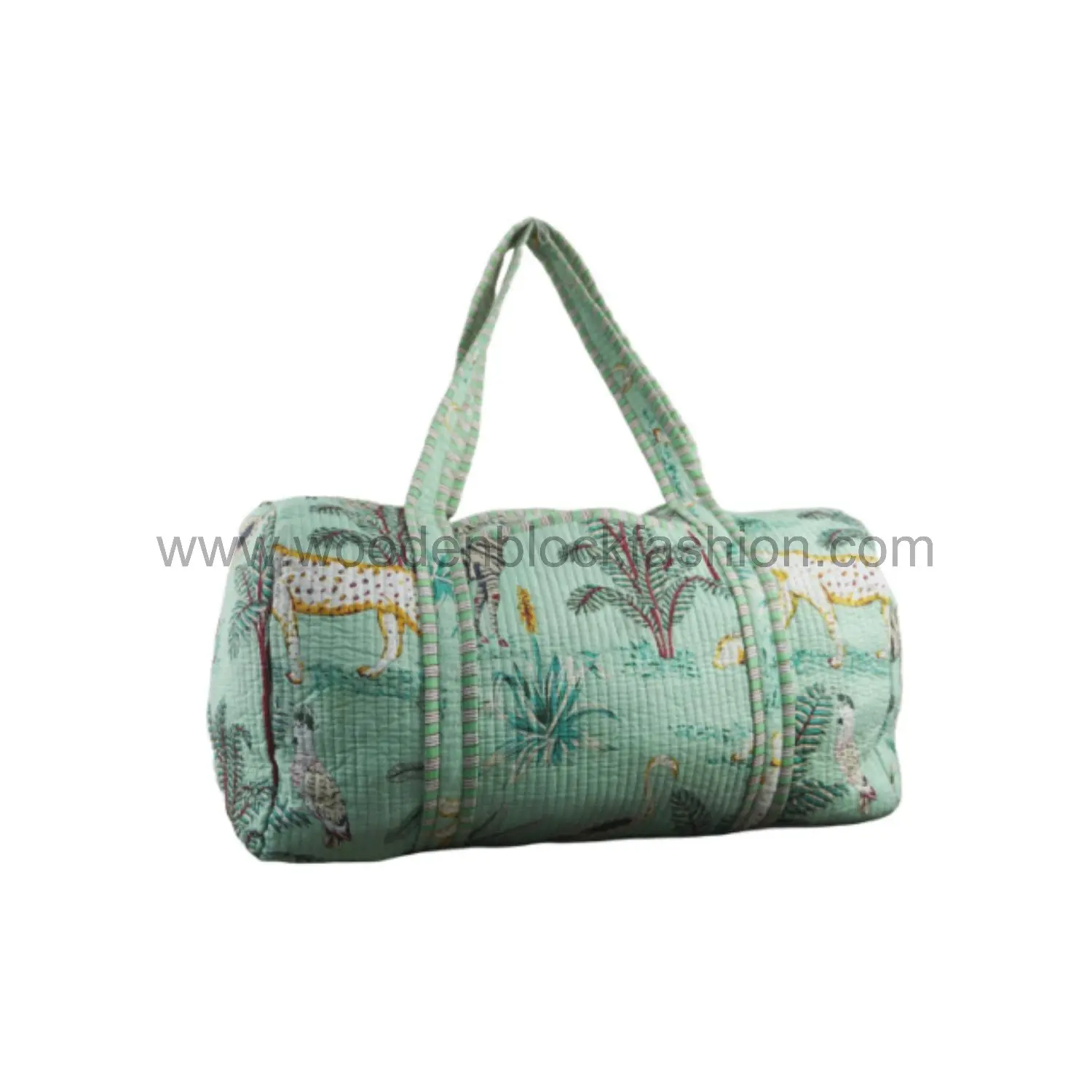 Women’s Handmade Block Printed Duffle Bag – Quilted Cotton Weekender