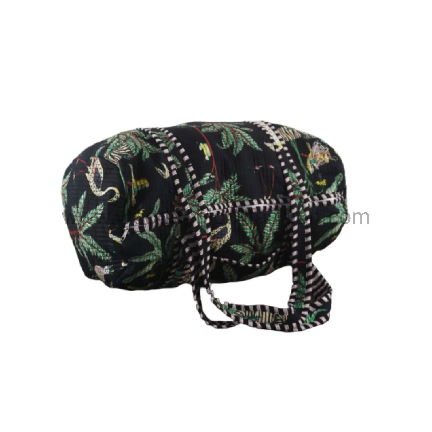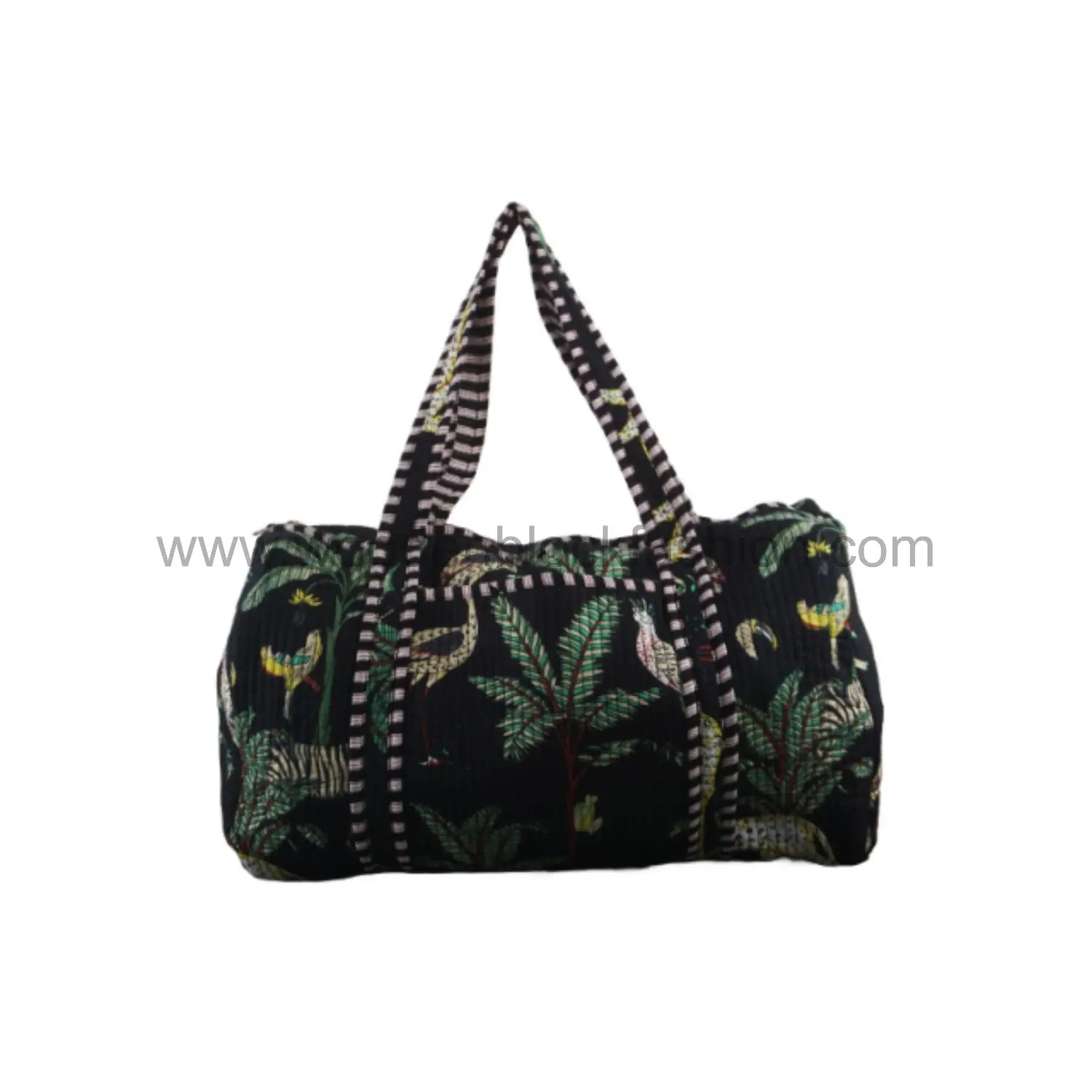Quilted Handmade Cotton Travel Duffle – Block Printed Overnight Bag